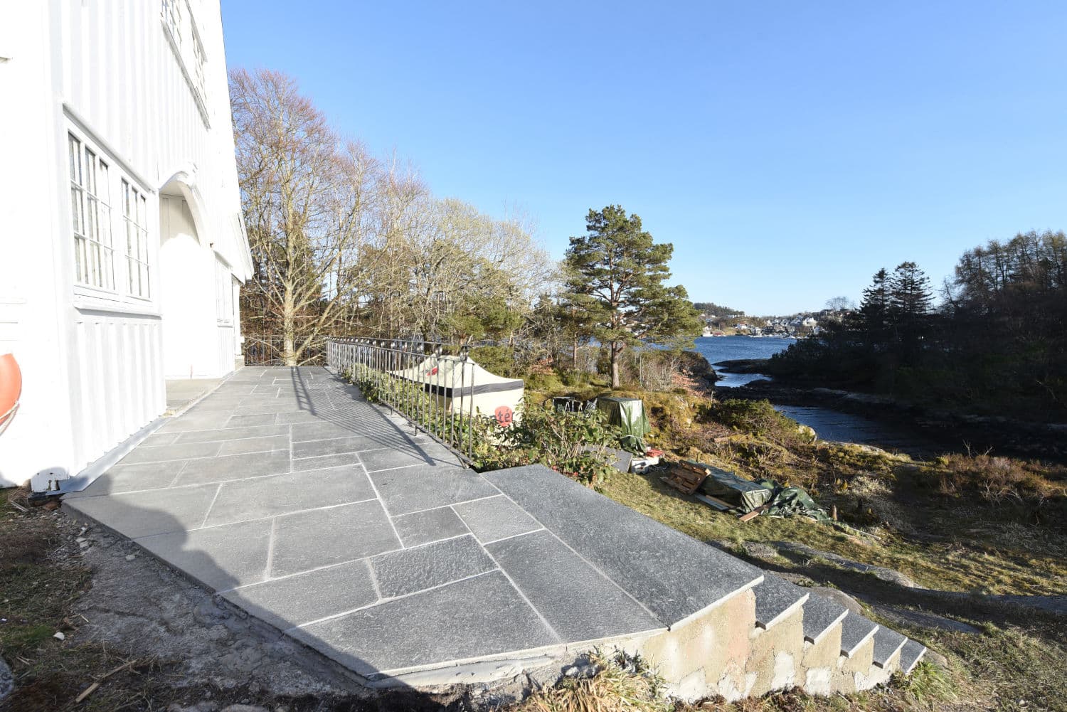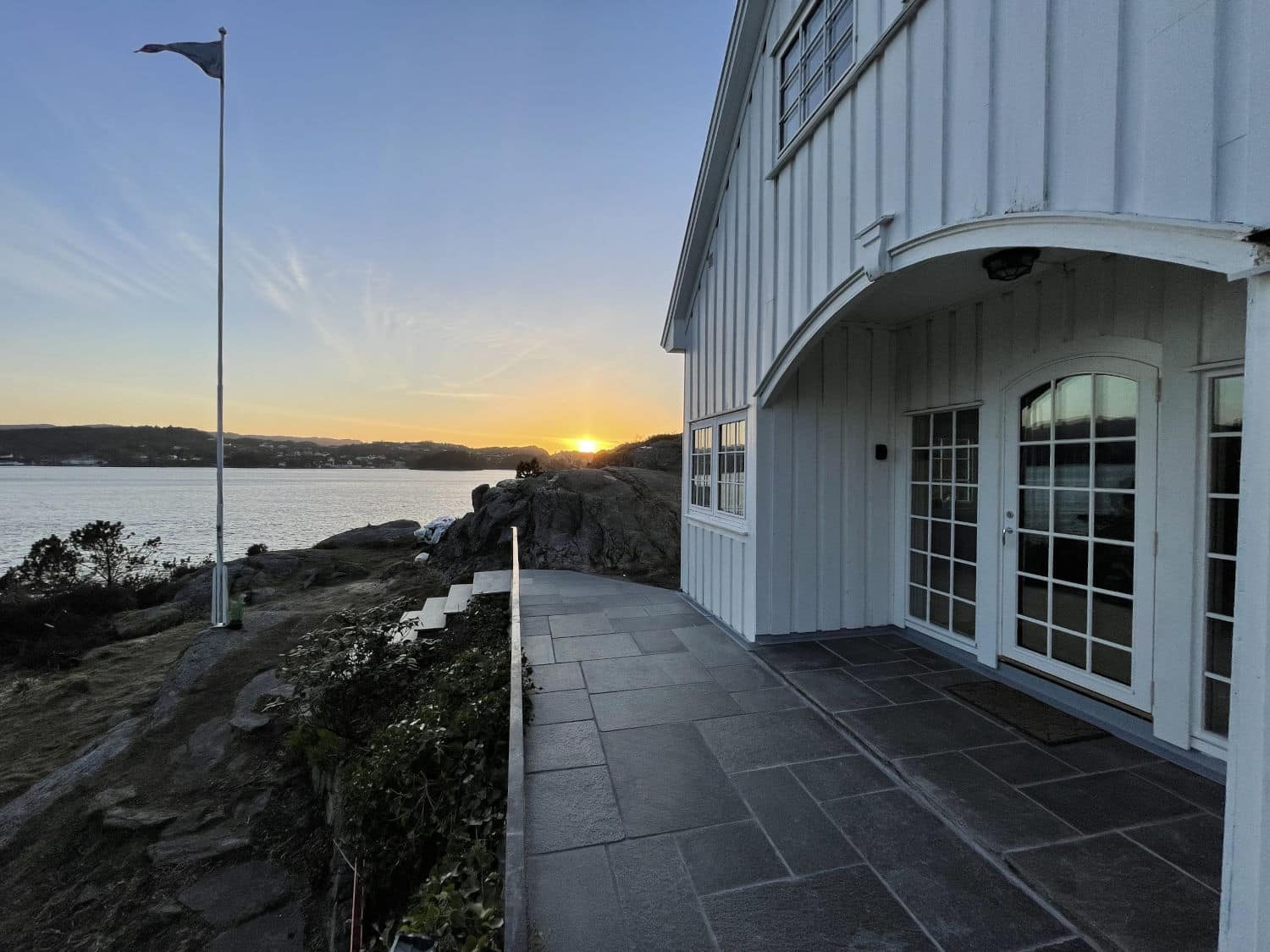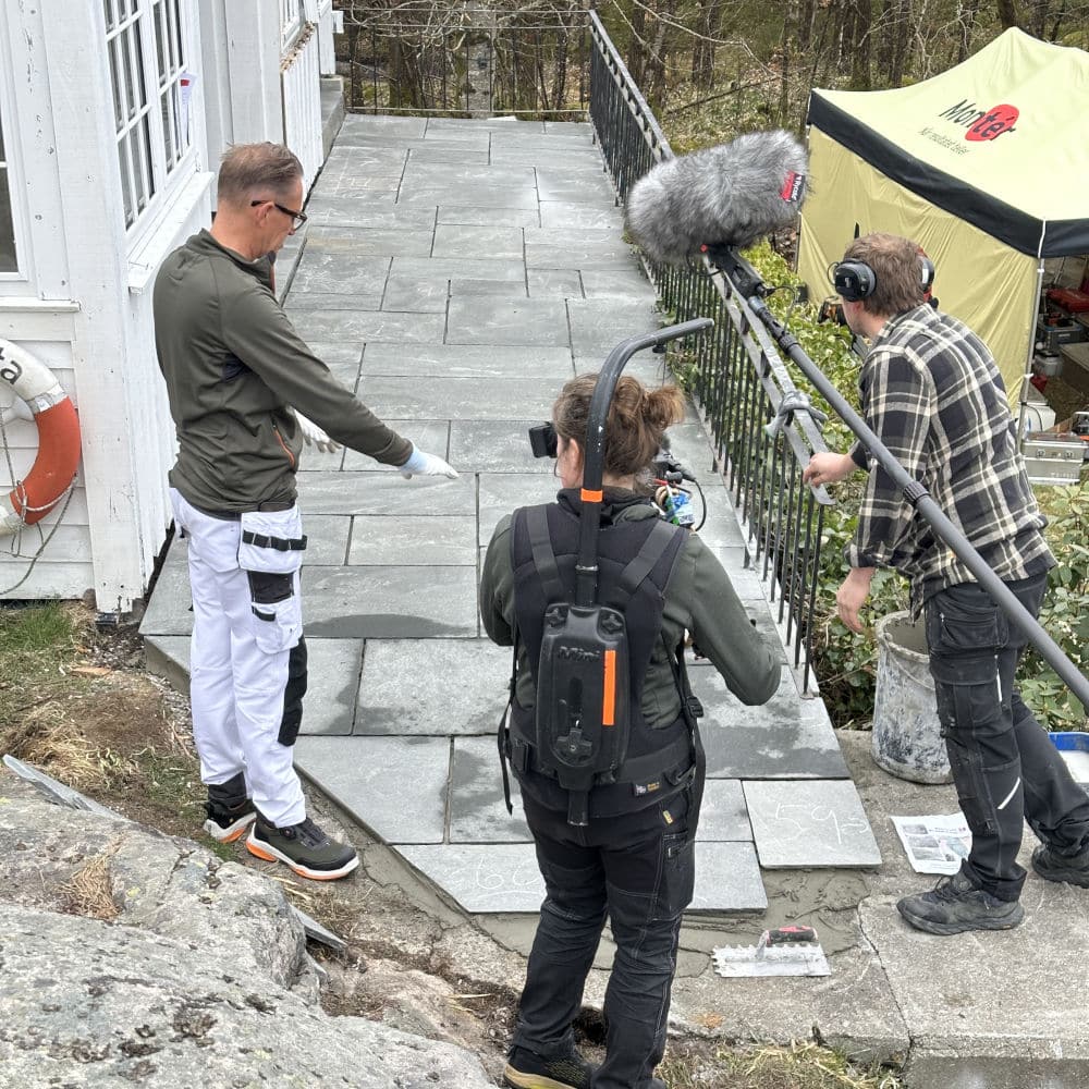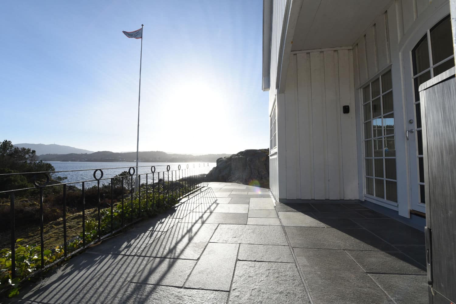Uteområdet ble løftet med Stoneart Bruddskifer Roman, en eksklusiv løsning som kombinerer rette linjer med et levende, tidløst uttrykk. Inspirasjonen til skiferen er hentet fra Fløyen, der klassisk norsk skifer danner rammen rundt Bergens kanskje vakreste utsikt. Resultatet på Odden ble et varig og elegant uteareal som tåler vestlandsvær – og som fremhever både naturen og historien rundt hytta.