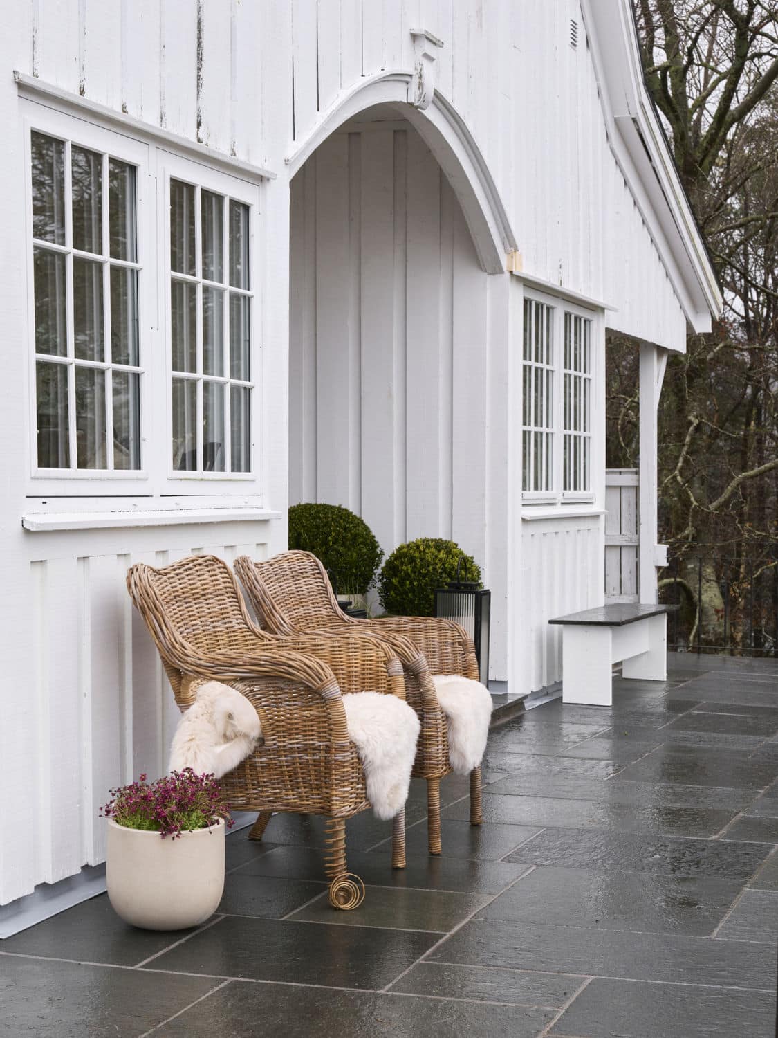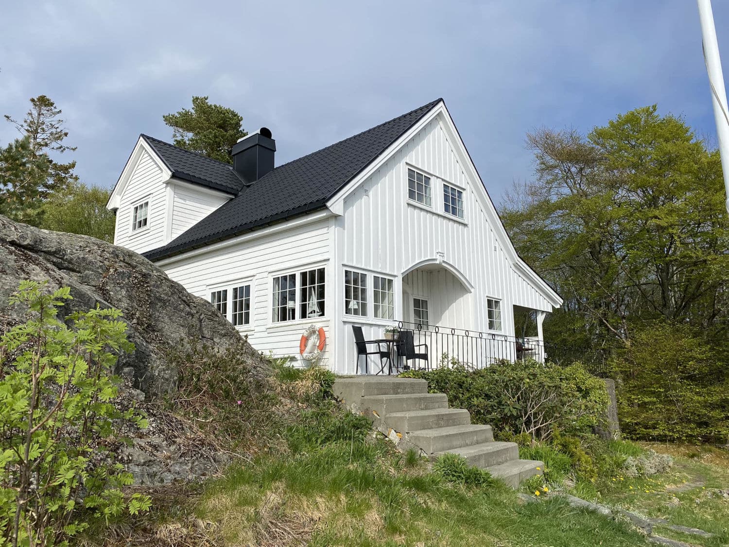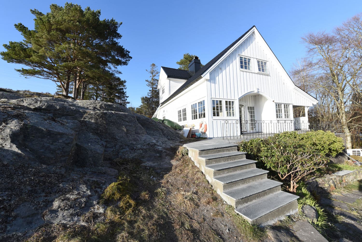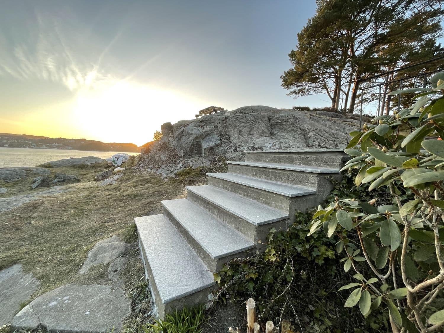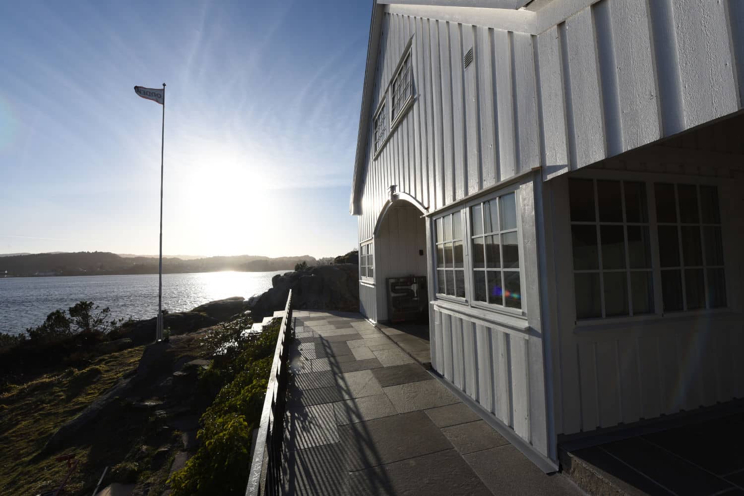 Uteområdet ble løftet med Stoneart Bruddskifer Roman, en eksklusiv løsning som kombinerer rette linjer med et levende, tidløst uttrykk. Inspirasjonen til skiferen er hentet fra Fløyen, der klassisk norsk skifer danner rammen rundt Bergens kanskje vakreste utsikt. Resultatet på Odden ble et varig og elegant uteareal som tåler vestlandsvær – og som fremhever både naturen og historien rundt hytta.