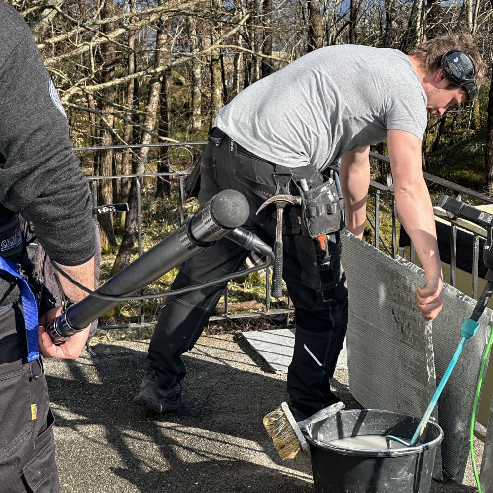 – Om skiferen skal ligge i sand/grus eller på støpt flate