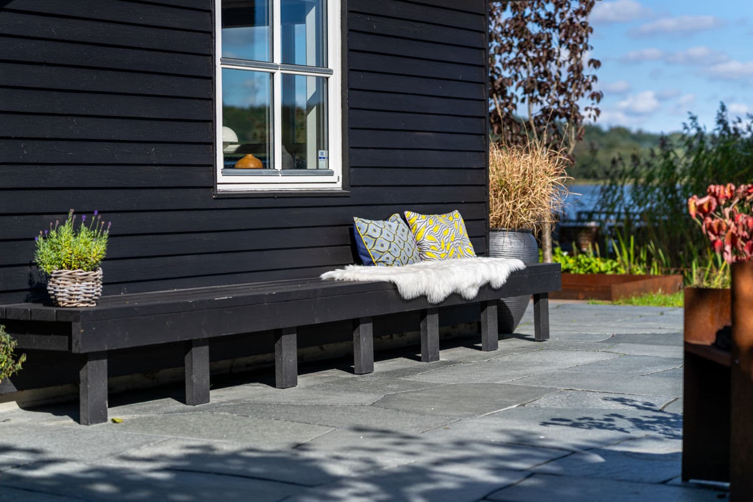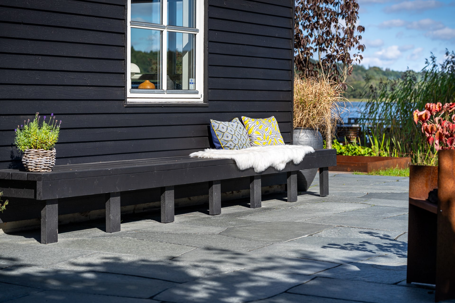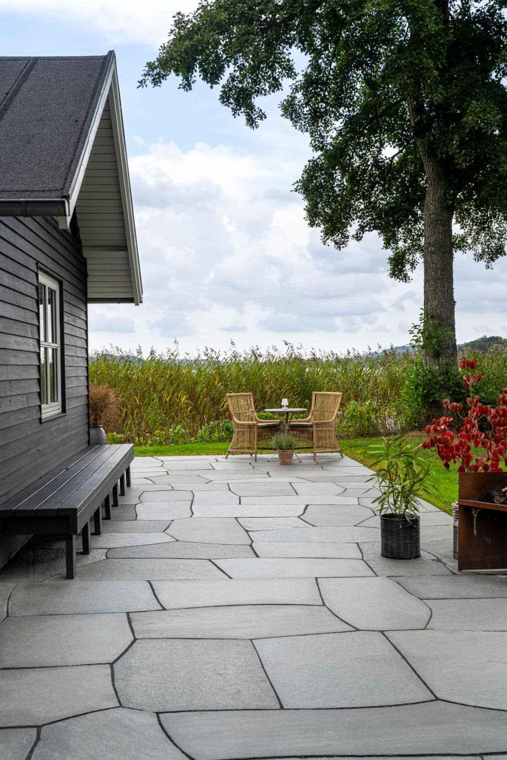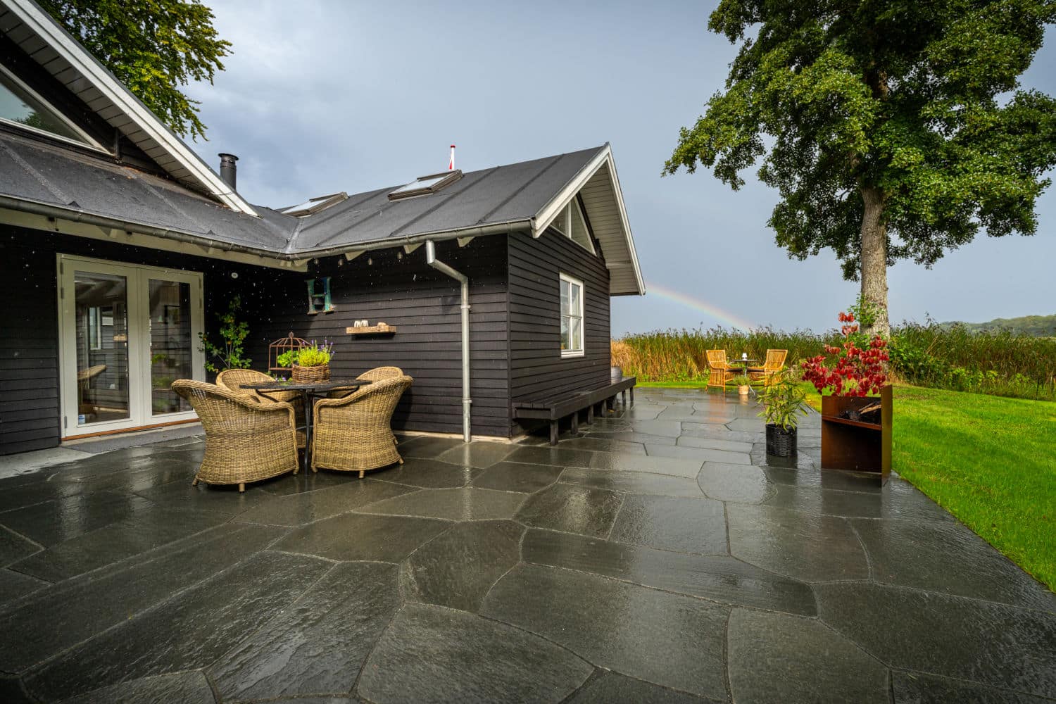 Norsk skifer er et kortreist byggemateriale i Danmark. Et vakkert naturprodukt uten noen tilsetning av kjemikalier eller skadelige stoffer. Uslitelig og holdbar – med minimalt behov for vedlikehold. Et perfekt valg til den praktgården.
